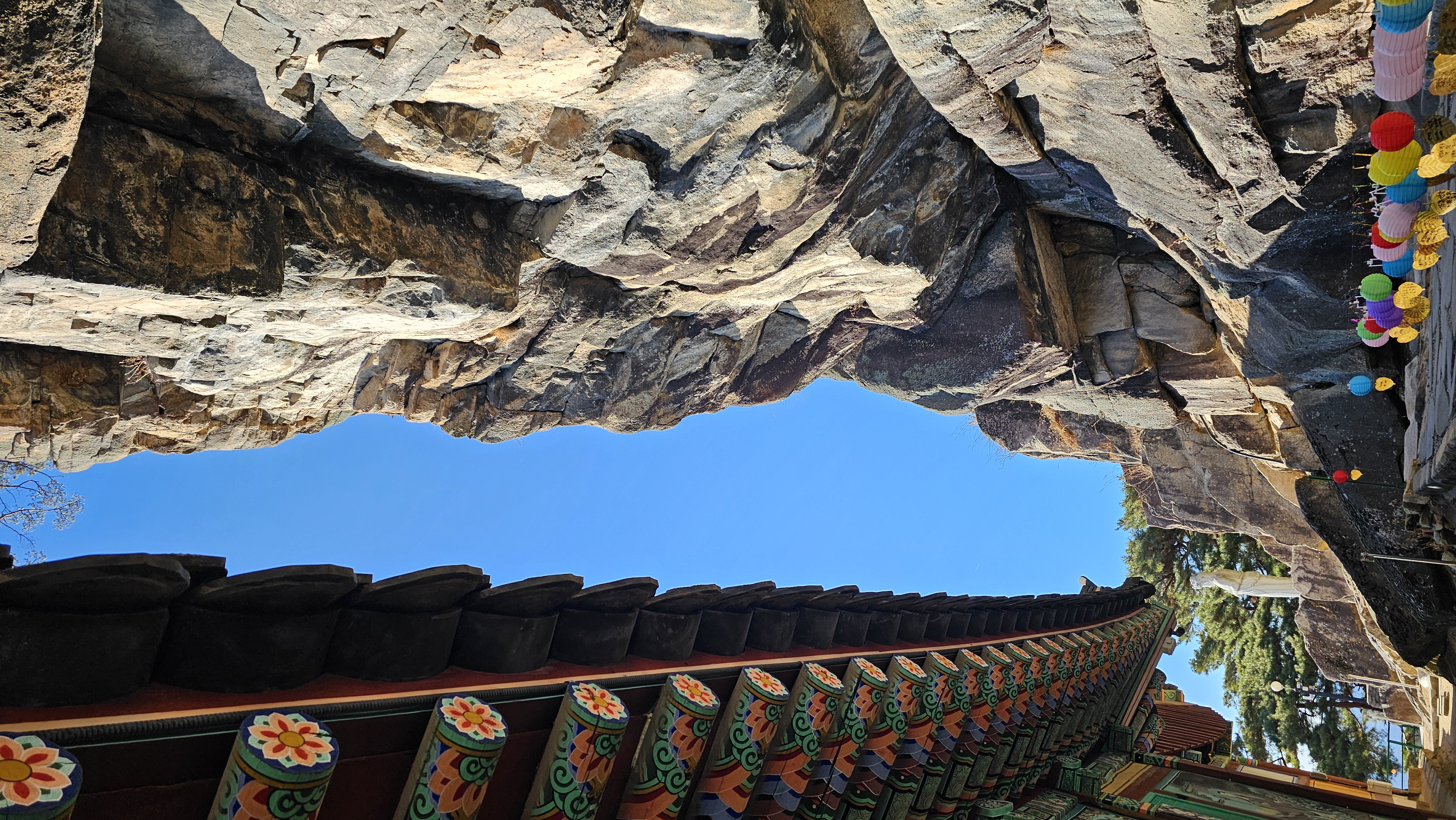 거대한 바위 사이에 약수가 있다.